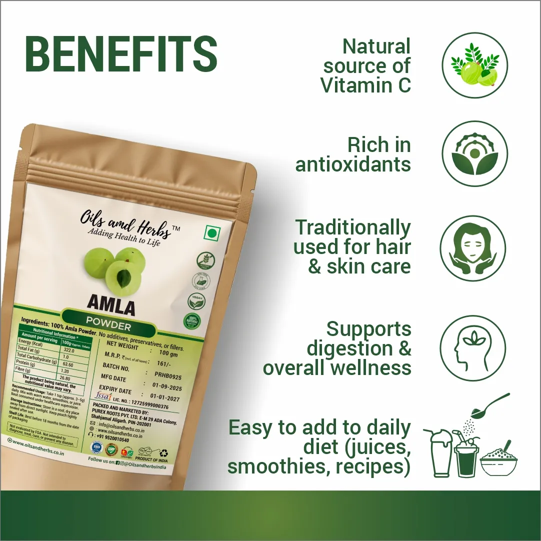Amla Powder Natural Herbal Supplement for Immunity and Hair Care