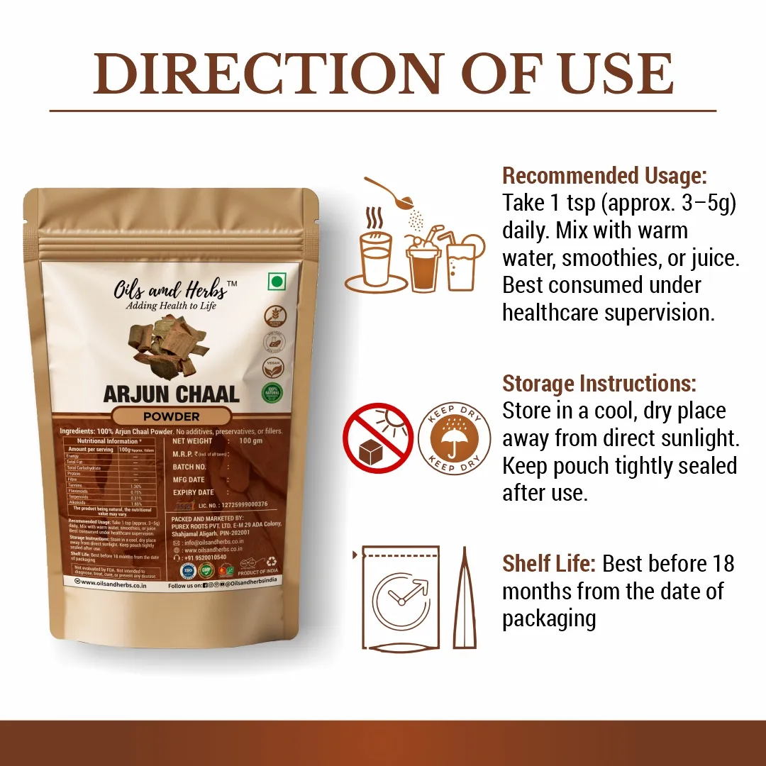 Arjun Chaal Powder Natural Herbal Supplement for Heart and Overall Wellness