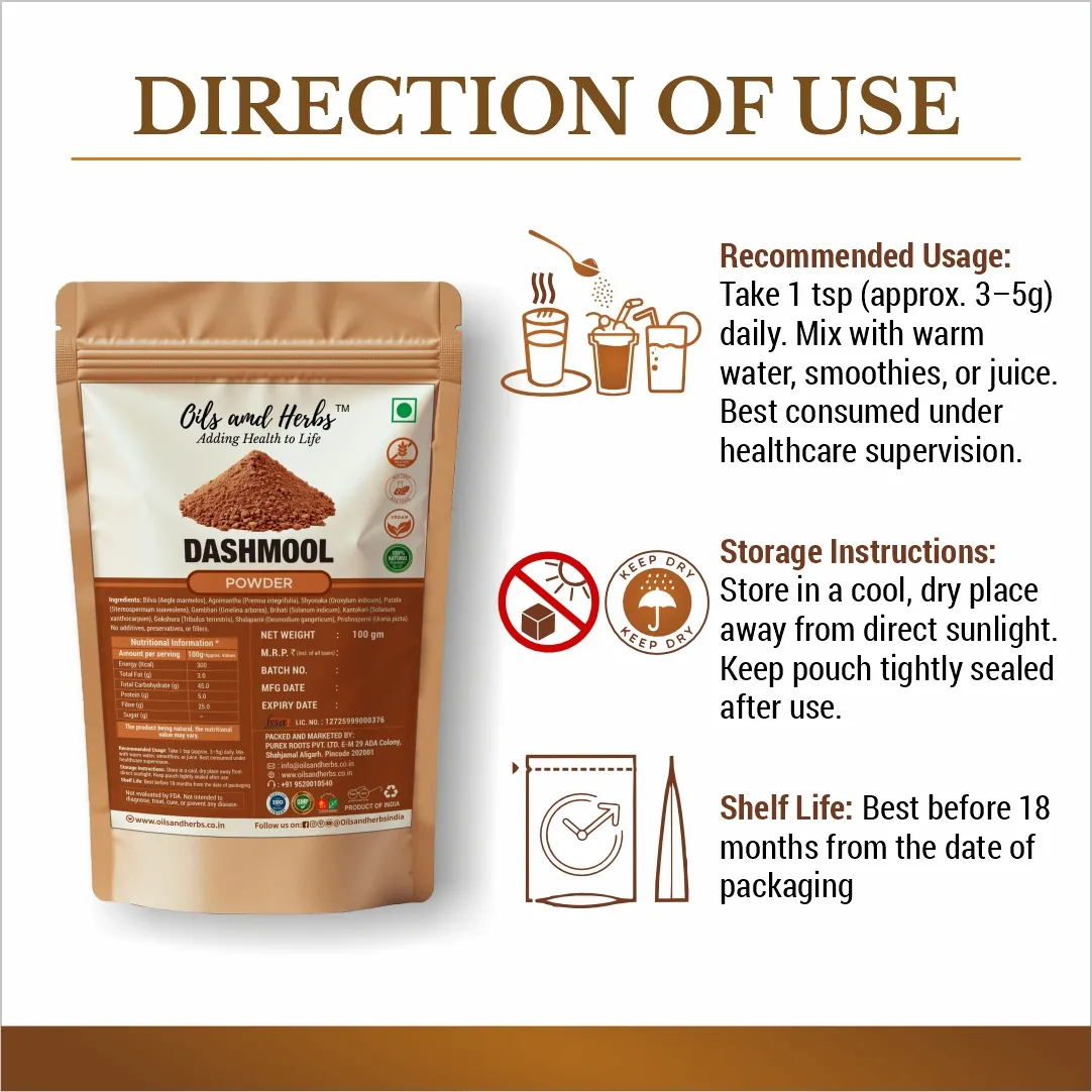 Dashmool Powder Natural Herbal Supplement for Joint and Overall Health
